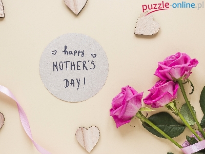 Puzzle Róże, Dzień Matki, Serduszka, Wstążka
