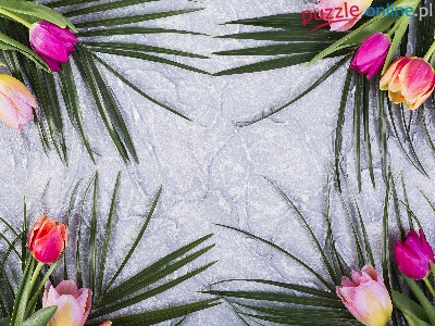 Liście, Tło, Kolorowe, Tulipany, Szare