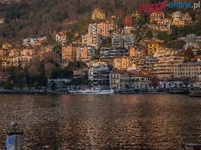 Miejscowość Como, Statek, Włochy, Nabrzeże, Jezioro Como, Domy, Lombardia