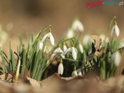 Puzzle Kwiaty, Białe, Przebiśniegi, Rozmyte tło