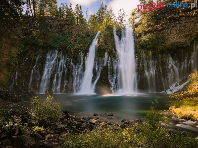 Drzewa, Stany Zjednoczone, Hrabstwo Shasta, Rzeka, Park McArthur-Burney Falls, Wodospad Burney Falls, Skała, Stan Kalifornia