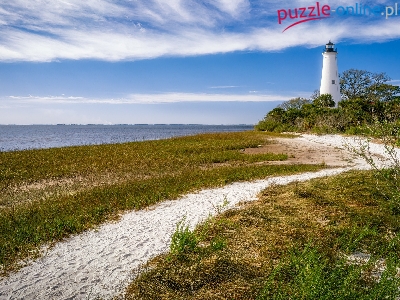 Puzzle Brzeg, Latarnia morska, Morze, Ścieżka