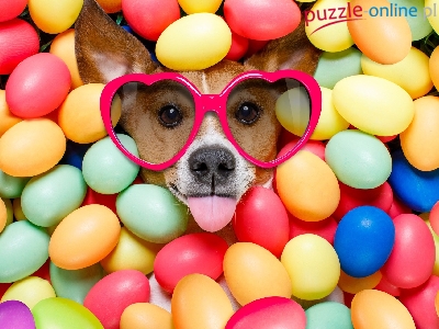 Język, Jack Russell terrier, Pisanki, Pies, Okulary, Wielkanoc