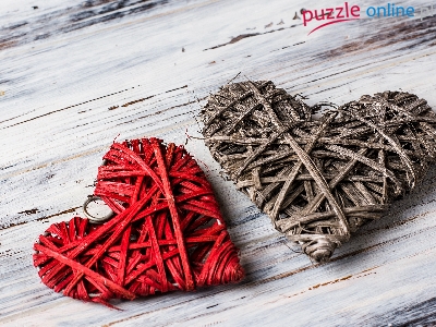 Puzzle Zawieszki, Dwa, Serca, Drewno