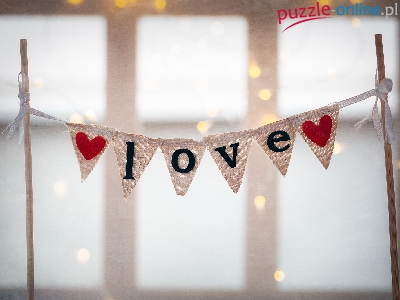 Puzzle Napis, Dekoracja, ChorÄ…giewki, Love