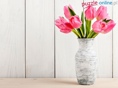 Puzzle Tulipany, Bukiet, Różowe, Wazon