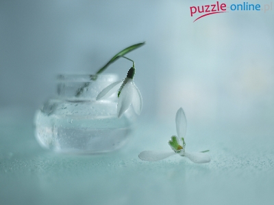 Puzzle Kwiaty, Przebiśniegi, Białe, Wazonik