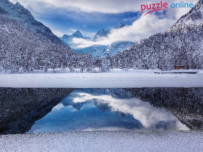 Alpy Julijskie, Jezioro Jasna, Słowenia, Zima, Góry, Kranjska Gora