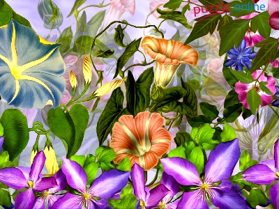 Puzzle Powój, Kwiaty, Powojnik, Grafika