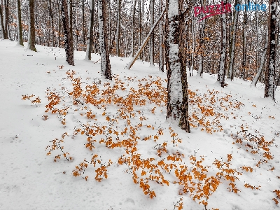 Pożółkłe. Liście, Zima, Las, Drzewa, Śnieg