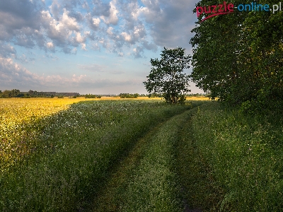 Łąka, Drzewa, Polna, Droga, Kwiaty