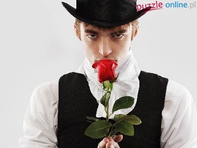 Kamizelka, Kapelusz, Róża, Koszula, Mężczyzna, Biała, Czerwona