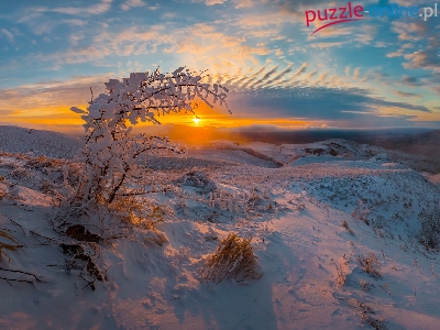 Wierzchołek, Rosja, Roślinność, Góra Strizhament, Ośnieżona, Zima, Wzgórza, Zachód słońca