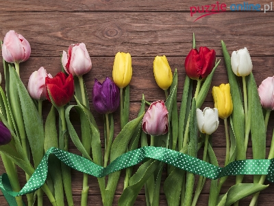 Puzzle Wstążka, Kolorowe, Tulipany, Deski