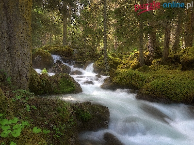 Rzeka, Drzewa, Kamienie, Las, Strumyk, Omszałe