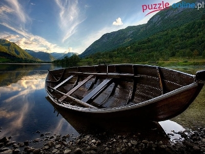 Puzzle Jezioro, Góry, Las, Łódka