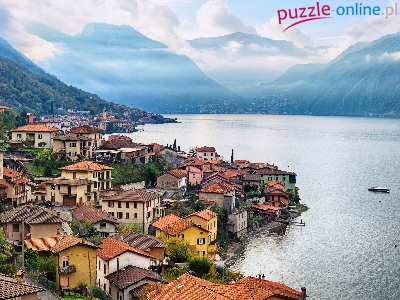 Góry Alpy, Miasto Como, Włochy, Jezioro Como, Domy, Region Lombardia