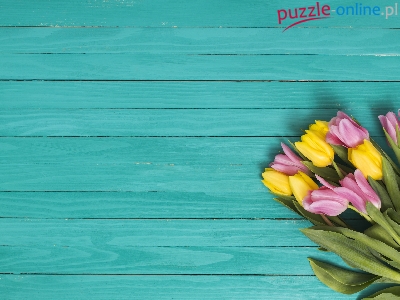 Bukiet, Różowe, Deski, Żółte, Tulipany, Zielone