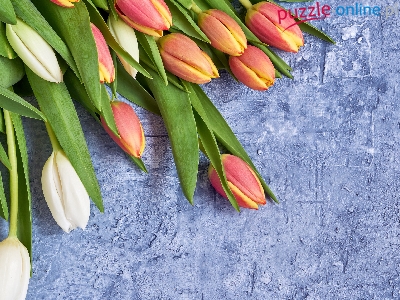 Puzzle Czerwono-żółte, Kolorowe, Białe, Tulipany