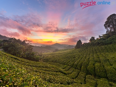 Plantacja, Cameron Highlands, Malezja, Wschód słońca, Wzgórza, Drzewa, Stan Pahang