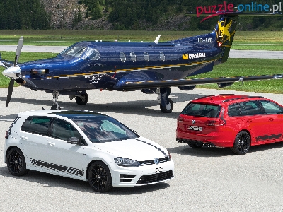 Samochody, Volkswagen Golf R360S, Pilatus PC-12, Czerwony, Dwa, Biały, Samolot
