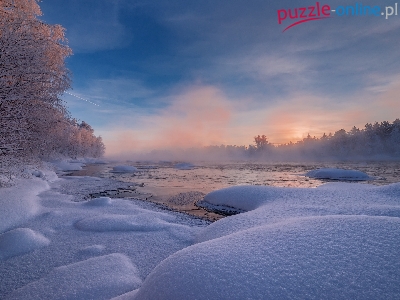 Mgła, Półwysep Kolski, Rosja, Drzewa, Zima, Rzeka Pirenga, Obwód murmański