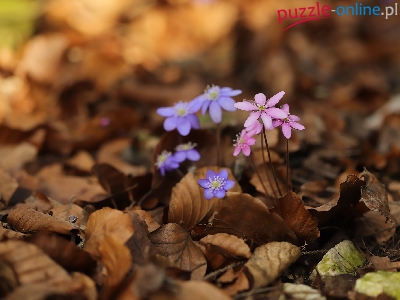 Kwiaty, Liście, Różowe, Przylaszczki, Suche