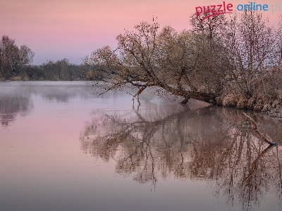 Świt, Odbicie, Łotwa, Drzewo, Rzeka Dubna, Pochylone, Łatgalia