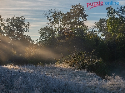 Puzzle Szron, Drzewa, Przymrozek, Przebijające światło
