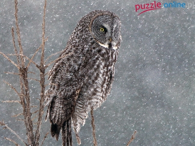 Puzzle Gałązki, Sowa, Puszczyk mszarny, Śnieg