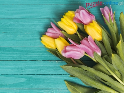 Puzzle Tulipany, Różowe, Żółte, Deski