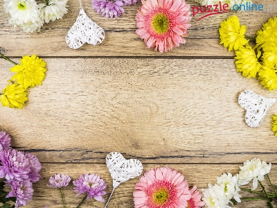 Puzzle Gerbery, Kwiaty, Chryzantemy, Serca
