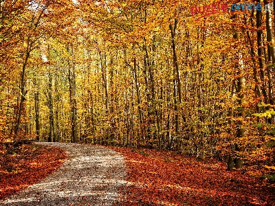 Puzzle Droga, Las, Drzewa, Jesień