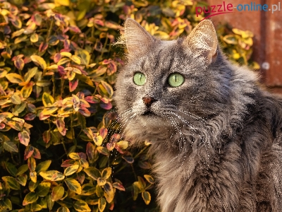 Puzzle Zielone, Długowłosy, Kot, Oczy