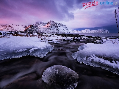 Morze, Lofoty, Zima, Norwegia, Góry, Śnieg
