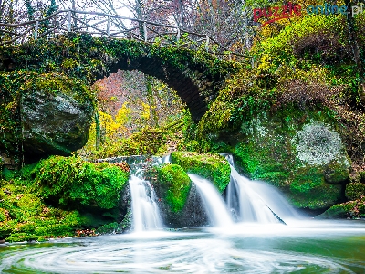 Rzeka, Kamienie, Drzewa, Most, Luksemburg, Las, Mullerthal, Skały, Wodospad Schiessentumpel, Omszałe, Mała Szwajcaria