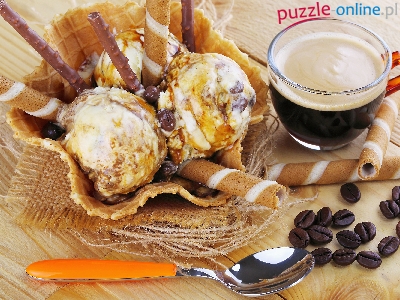 Puzzle Filiżanka, Lody, Wafel, Kawa