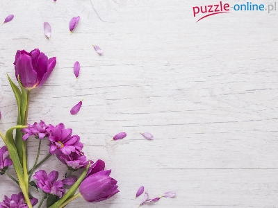 Chryzantemy, Bukiet, Fioletowe, Tulipany, Kwiaty