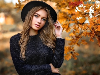 Drzewo, Kapelusz, Jesień, Kobieta, Makijaż, Dąb