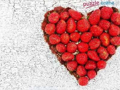 Puzzle Obdrapane, Truskawki, Serce, Drewno