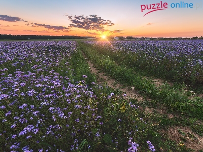 Fioletowe, Promienie słońca, Łąki, Droga, Kwiaty