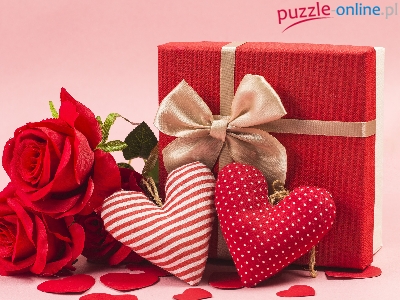 Puzzle Roże, Prezent, Serca, Walentynki