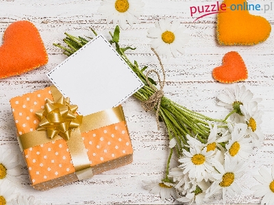 Margerytki, Kartka, Walentynki, Prezent, Serca, Deski