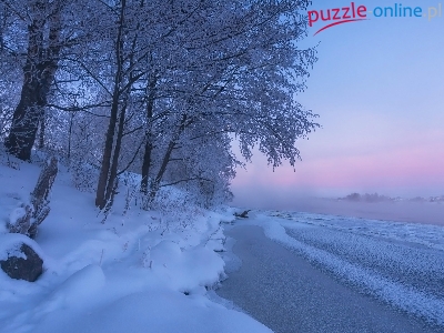 Mgła, Drzewa, Zima, Rzeka, Ośnieżone