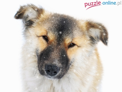 Puzzle Białe, Pies, Śnieg, Tło