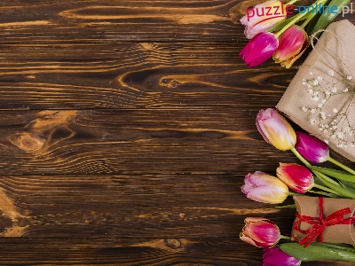 Puzzle BrÄ…zowe, Tulipany, Prezent, Deski