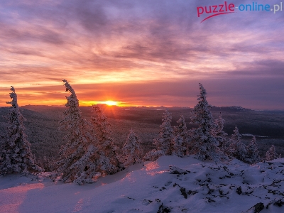 Śnieg, Drzewa, Chmury, Ośnieżone, Zima, Las, Zachód słońca