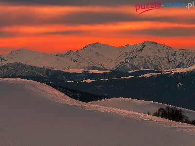 Puzzle Śnieg, Zima, Góry, Zachód słońca