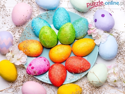 Puzzle Pisanki, Wielkanoc, Kolorowe, Talerz