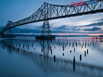 Puzzle Rzeka Kolumbia, Stany Zjednoczone, Most Astoria-Megler, Zachód słońca